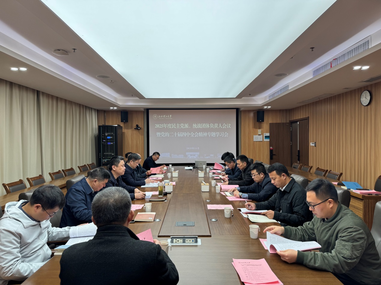 召开2025年各民主党派统战团体负责人会议暨党的二十届四中全会精神专题学习会。校党委副书记徐志峰出席会议并讲话。校各民主党派、统战团体主委、班子成员及无党派人士代表等参加了专题学习会。校党委常委、统战部部长汪锋锁主持会议。