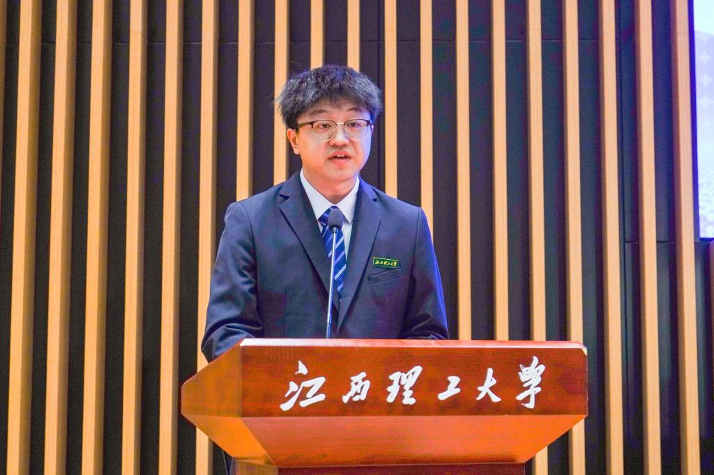 学生代表、先进铜产业学院2023级硕士研究生徐祥龙分享了他深耕创新创业大赛七年的经历。他表示,创新创业大赛不仅是技术的比拼,也是青年淬炼成长的熔炉和梦想照进现实的舞台。他从“凝心聚力、笃劲不怠、敢创善为”三方面分享了心得,同时鼓励同学们将个人理想融入国家发展大局,勇敢地将想法变为行动,将梦想照进现实,在创新创业的广阔舞台上书写无愧于时代的青春篇章。