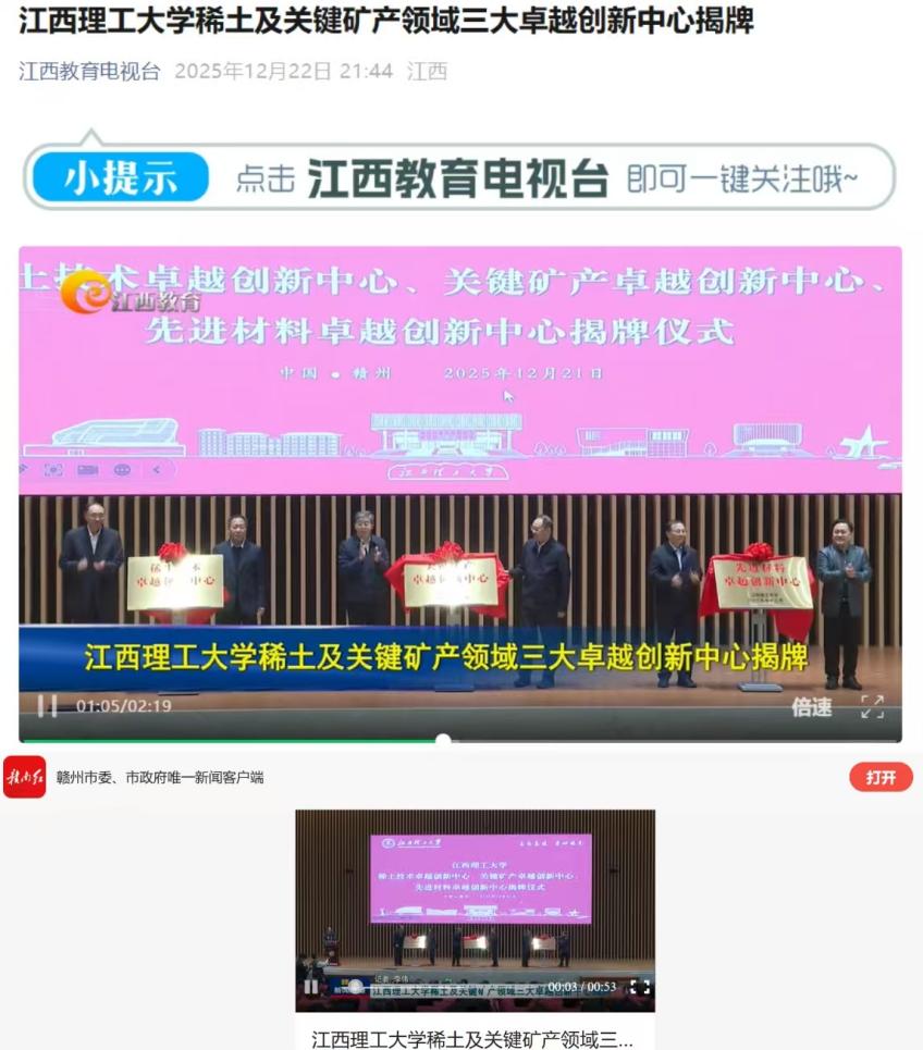 稀土技术卓越创新中心、先进材料卓越创新中心、关键矿产卓越创新中心正式揭牌成立。该举措是学校面向国家战略资源安全与高效利用、突破关键矿产领域“卡脖子”技术的重要行动,标志着学校在相关领域的科研平台建设与创新能力迈上新台阶。