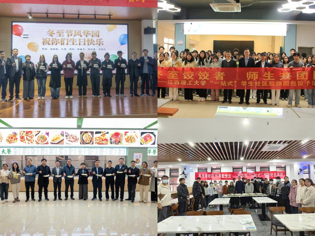 在赣州、南昌、鹰潭、信丰四地七个学生社区,开展以“情暖冬至 饺香社区”为主题的冬至包饺子文化体验活动。中国工程院院士朱荣校友,校领导刘祖文、徐志峰、熊志华、刘飞、宁洁、陈斌,校党委常委、统战部部长汪锋锁等出席活动,学校本科生、研究生、国际生、学生家长代表参加活动。与师生代表、国际学生及家长团聚一堂,共叙情谊、同包饺子、共享饺香。