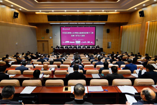 第七届委员会第十三次全体(扩大)会议在三江校区召开。会议听取2025年以来学校党委常委会的工作报告,部署学校2026年度和今后一个时期重点工作,深入研究学校“十五五”事业发展规划编制工作。全体校领导和全体党委委员出席会议。校学术委员会主席、副主席,校务委员会主任、副主任委员,校纪委委员,各民主党派负责同志及各二级单位党政主要负责人参加会议。