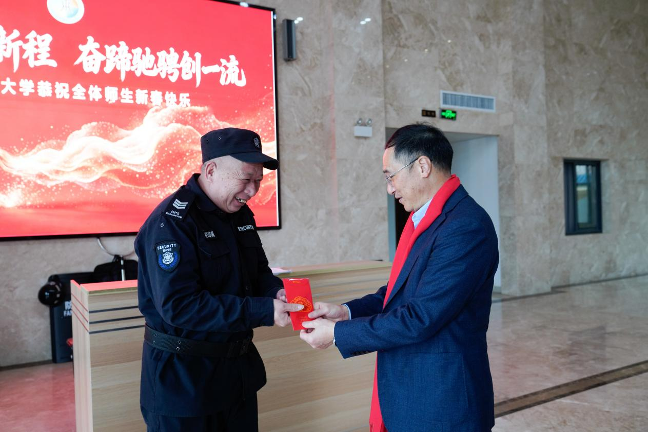 一声声问候温暖人心,一句句祝福传递真情。此次除夕走访慰问活动,不仅让在岗值班教职员工和留校国际学生感受到了学校的关怀与温暖,更凝聚了人心、鼓舞了士气。受到慰问的师生纷纷表示,将继续凝心聚力、携手同行,以更加饱满的热情、更加昂扬的姿态投入到学校的各项工作和学习中,共同推动学校事业高质量发展。