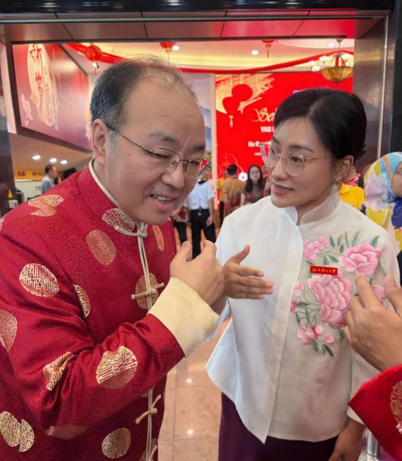 本次盛会场面宏大,马来西亚总理拿督斯里安华·依布拉欣(Dato' Seri Anwar Ibrahim)、中国驻马来西亚特命全权大使欧阳玉靖阁下等亲临现场。在团拜活动现场,杨婷老师与安华总理进行了亲切的交谈,向欧阳玉靖大使汇报了个人在马开展华文教育研究的进展,并介绍了学校近年来在服务‘一带一路’倡议及国际中文教育方面所做的努力。
