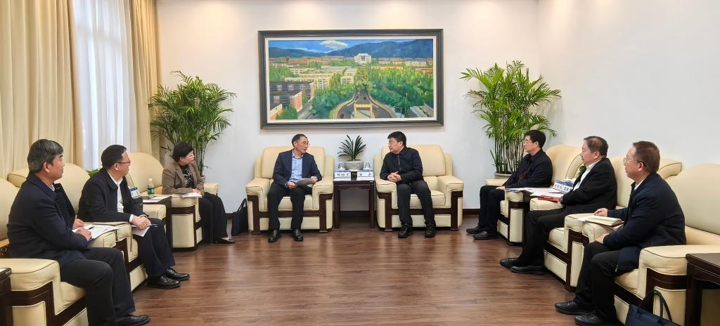 13日上午,刘祖文一行前往中南大学交流对口支援工作,并与中南大学党委书记安实、党委副书记付刚华进行了会谈交流。