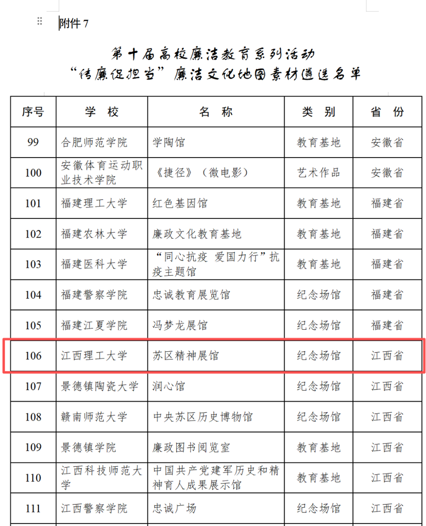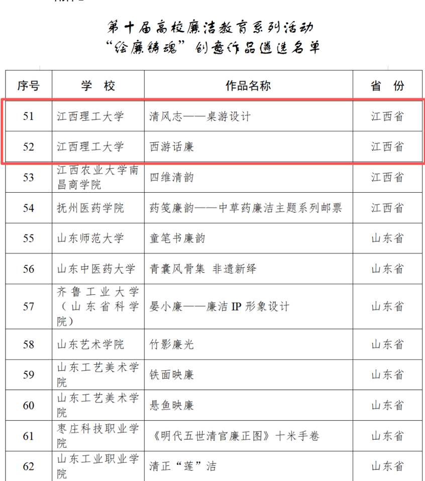 本网讯 近日,教育部以“清风育德守初心 廉洁笃行担使命”为主题组织开展了第十届高校廉洁教育系列活动本并公布活动遴选结果。体育博彩 共有3件作品成功入选,入选数量位列江西省高校第一,充分展现了学校在廉洁文化建设和思想政治教育工作中的扎实成效与突出实力。