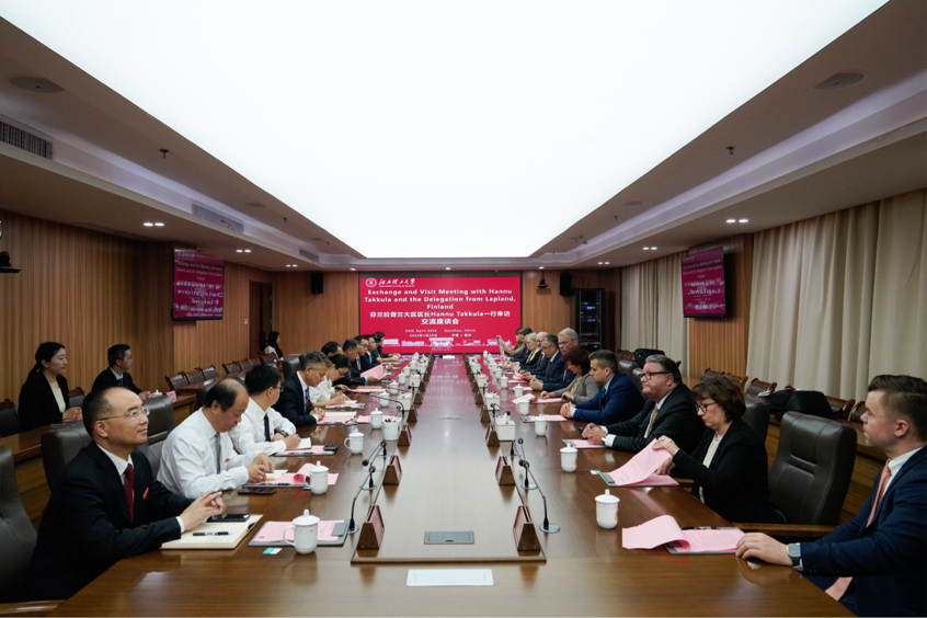 本网讯 4月20日,芬兰拉普兰大区区长Hannu Takkula、拉普兰大区议会主席Olli Rainio一行来访,并在三江校区举行交流座谈会。江西省人民对外友好协会专职副会长涂安波、赣州市人民政府副秘书长刘冬良出席。校党委书记刘祖文,校党委常委、副校长、矿产智能开发学部部长董冰岩出席。科学技术研究院、矿产智能开发学部、矿业工程学院、国际教育学院和国际交流与合作处相关负责人参加座谈。