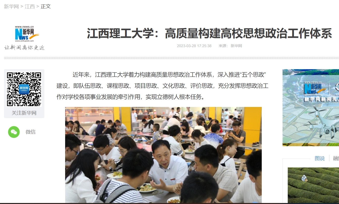 队伍思政聚焦师生队伍,营造人人育人的良好环境。学校成立由校党委书记、校长担任组长,党委副书记任常务副组长的思想政治工作领导小组,形成党委统一领导、各部门各方面齐抓共管的大思政工作格局。课程思政强调课程育人功能,推进思政课程和课程思政同向同行、提质创优。学校深入推进思政课改革创新和“大思政课”建设,在创新VR+思政、音乐+思政上初现成效,4门主干思想政治理论课皆获评江西省一流课程。