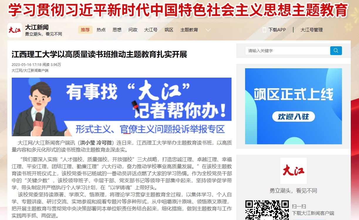 “我们要深入实施“人才强校、质量强校、开放强校”三大战略,打造忠诚江理、卓越江理、幸福江理、平安江理、团结江理、勤廉江理”六大行动,奋力推动学校事业高质量发展。”在该校主题教育读书班开班仪式上,该校党委书记杨斌的一番动员讲话点燃了大家的学习热情。作为全校党员干部中的“关键少数”,该校领导班子、中层干部、党支部书记等领导干部集中起来,坚持领学促学带学,带头制定并严格执行个人学习计划,在“以学铸魂”上带好头。