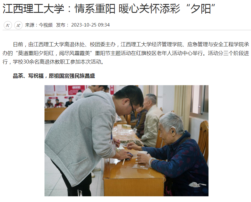 经济管理学院、应急管理与安全工程学院承办的“莫道重阳夕阳红,阅尽风霜霞美”重阳节主题活动在红旗校区老年人活动中心举行。活动分三个阶段进行,学校30余名离退休教职工参加本次活动。