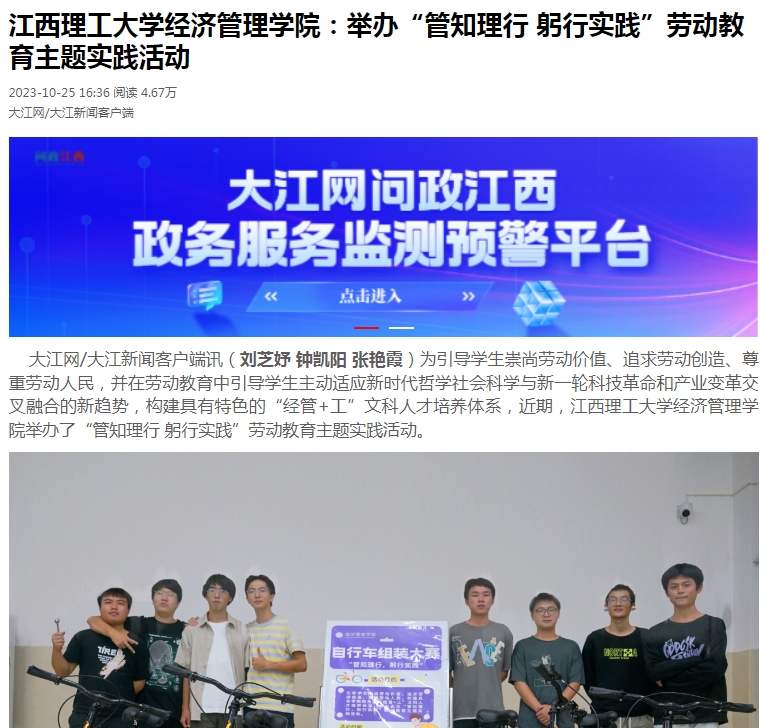 《大江网》:体育博彩 经济管理学院:举办“管知理行 躬行实践”劳动教育主题实践活动