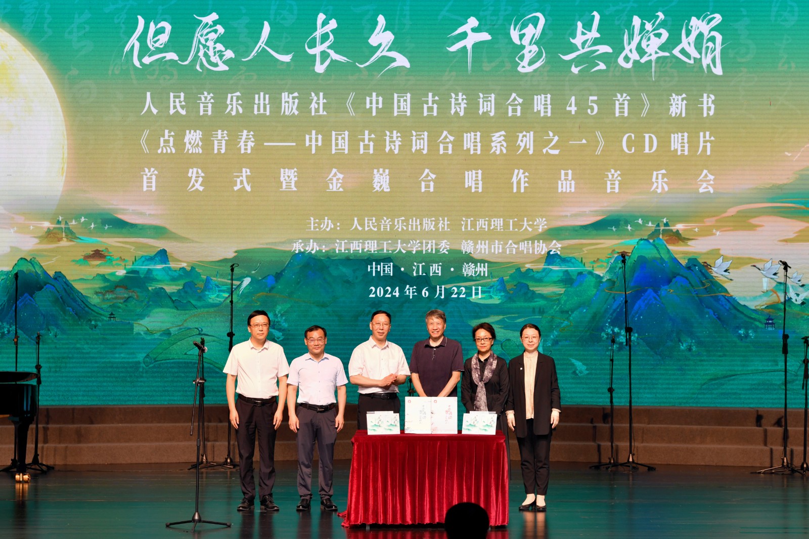 6月22日,“但愿人长久,千里共婵娟”——《中国古诗词合唱45首》新书、《点燃青春——中国古诗词合唱系列之一》CD专辑首发式暨金巍合唱作品音乐会在赣州大剧院举行。人民音乐出版社副总编辑李向颖,中国合唱协会理事长马俊英,市领导钟小武,体育博彩