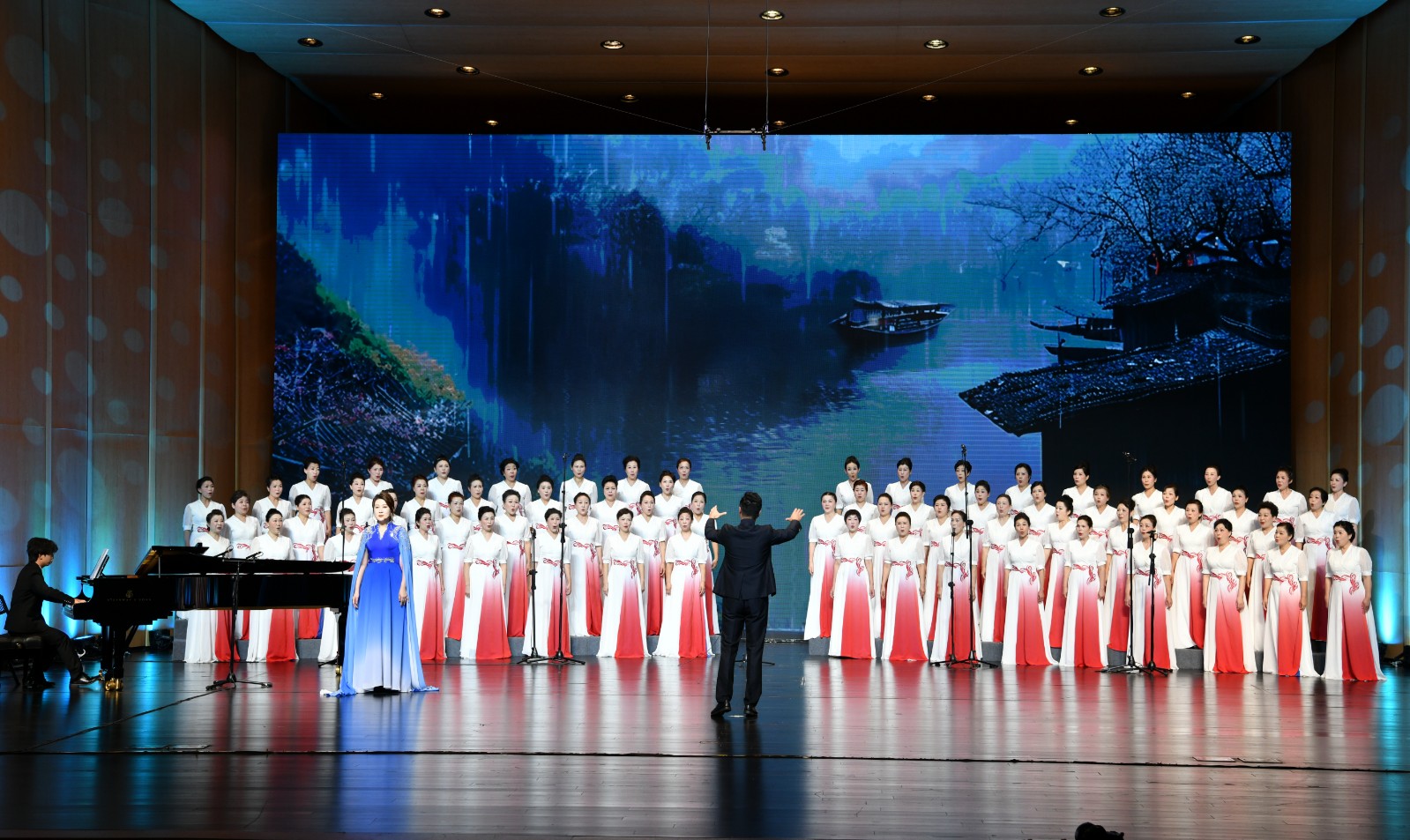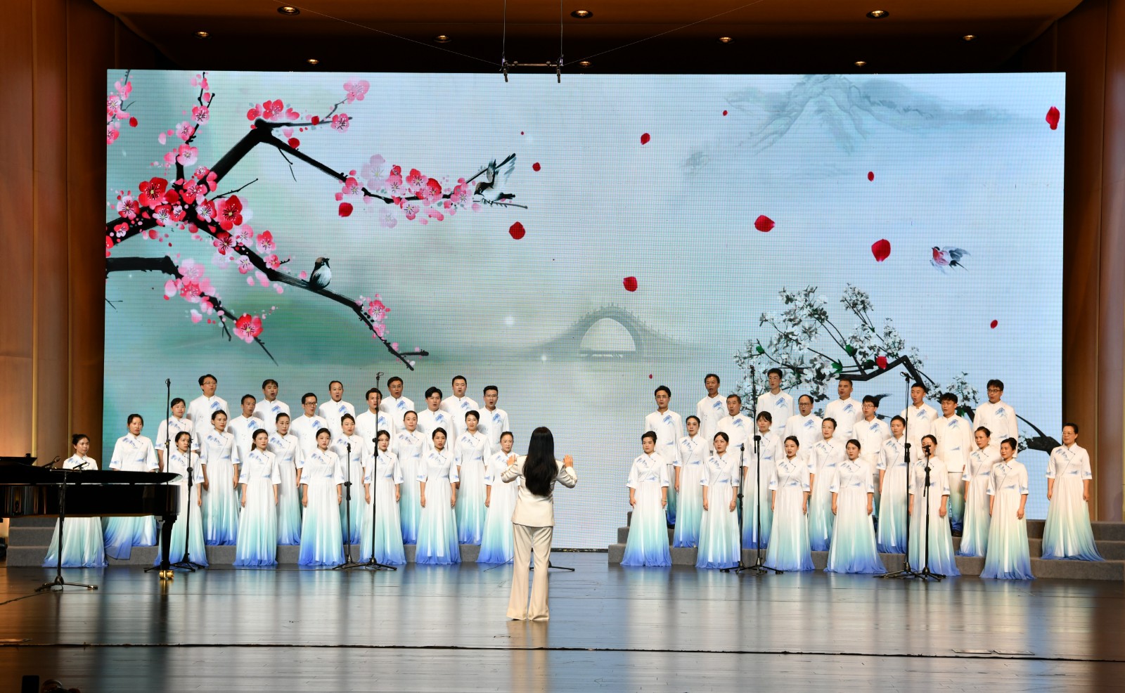 赣州市妇联巾帼合唱团演唱《春夜喜雨》。