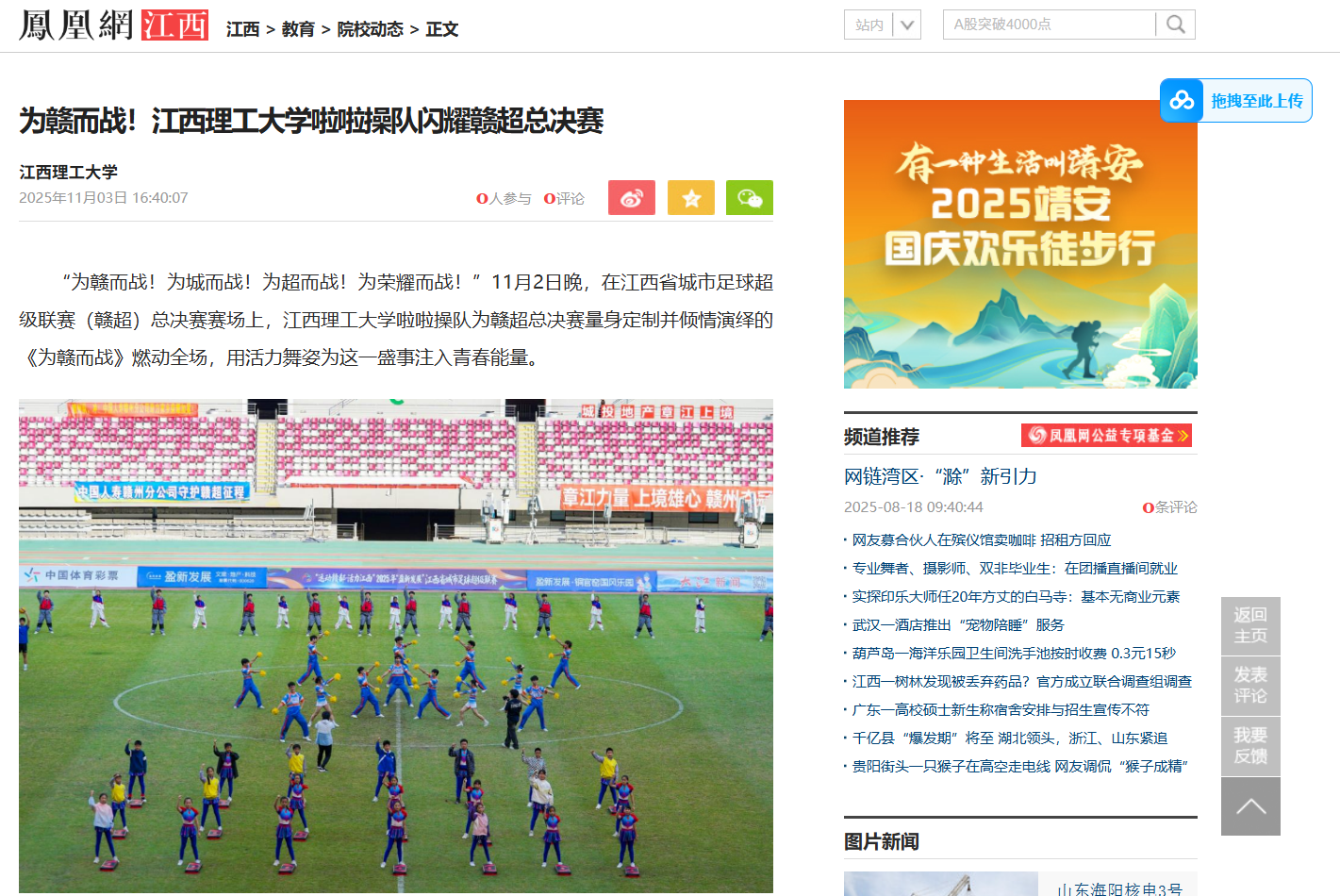啦啦队助理教练刘炜表示:“希望通过这次表演,向全省球迷传递青春自信、团队拼搏与健康快乐的体育精神,也展现出在赣州这片红色土地上江理青年的奋进力量。”未来,体育博彩