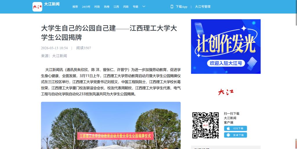 劳动教育启动月暨大学生公园揭牌仪式在三江校区举行,体育博彩