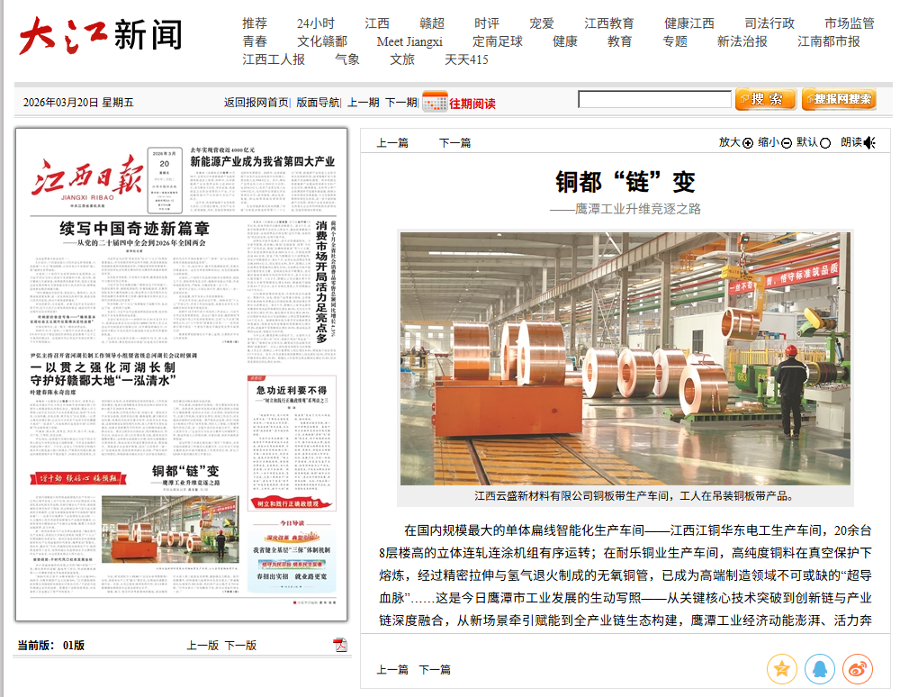 通过将自身发展主动嵌入国家现代化产业体系,鹰潭铜产业实现了从资源依赖到创新驱动、从基础材料到尖端应用的战略转型,也让城市发展脉搏与国家战略同频,在更高维度上实现“风口”与“根基”的契合。