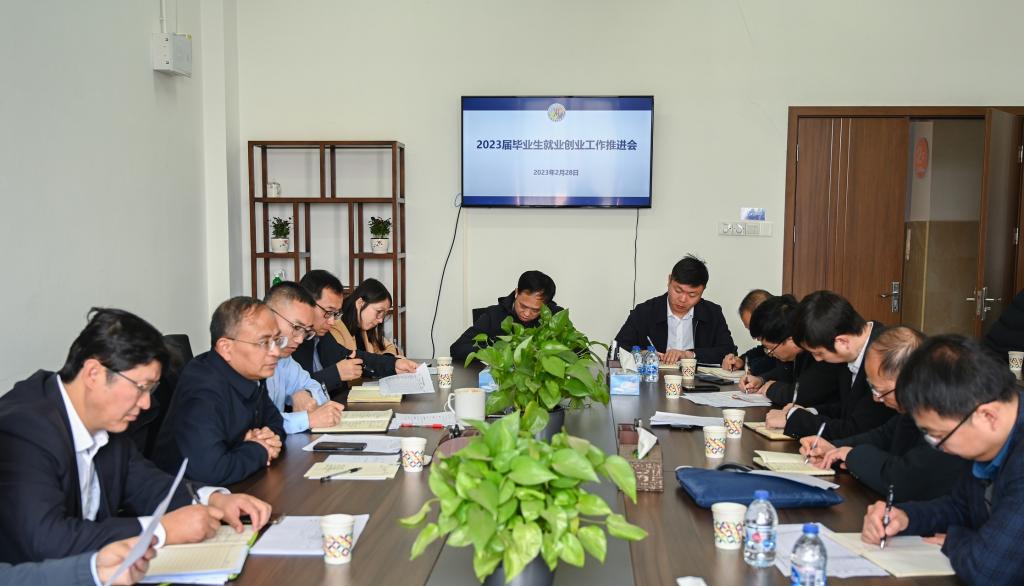 在三实楼B220召开2023届毕业生就业创业工作推进会。校党委常委、副校长李国金出席会议,学工部、武装部、招就处负责人、各学院(学部)党委副书记参加会议,会议由招就处副处长刘慧主持。