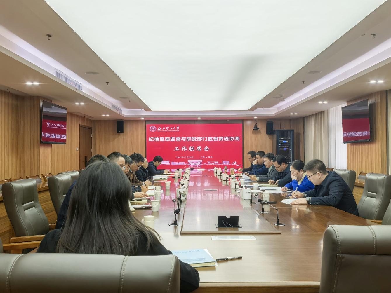本网讯 12月18日,体育博彩 召开纪检监察监督与职能部门监督贯通协调工作联席会。校党委常委、纪委书记、监察专员刘飞,校党委常委盛晓明、汪锋锁出席会议,相关职能部门负责人参加会议。