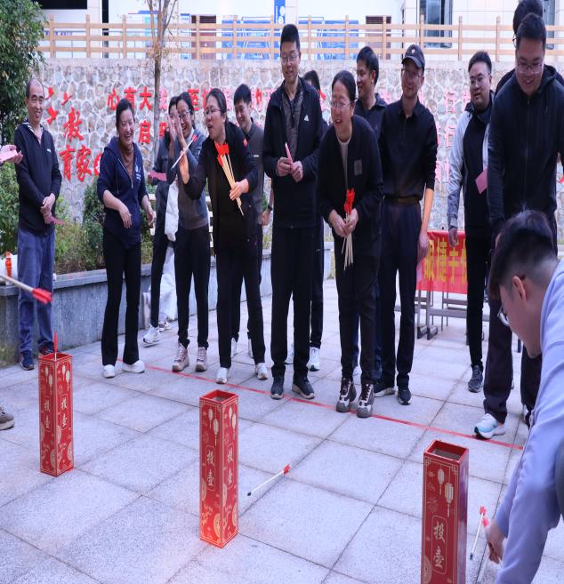 拔河比赛结束后,趣味十足的游园闯关活动拉开帷幕。活动现场设置创意关卡:“眼捷手快”投壶区考验精准与稳定,“图个明白”猜成语区比拼智慧与默契,“智力矩阵”数独区挑战逻辑与速度,“晕头转向乐”游戏区充满欢声笑语,“决胜脑力”答题区则聚焦学校管理制度,严肃又活泼。教职工们手持游园卡,兴致勃勃地穿梭于各个关卡之间,尽情享受趣味竞技带来的快乐,现场成为一片欢乐的海洋,成功集齐五枚印章的老师均获得了参与终极幸运抽奖的资格。