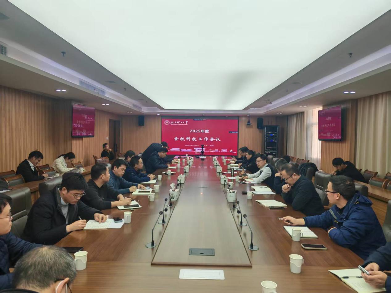 在三江校区濂溪楼召开2025年度全校科技工作会议,总结全年科技工作,部署2026年科技管理改革及重点任务。副校长汪航出席会议,会议由科学技术处处长吴彩斌主持。
