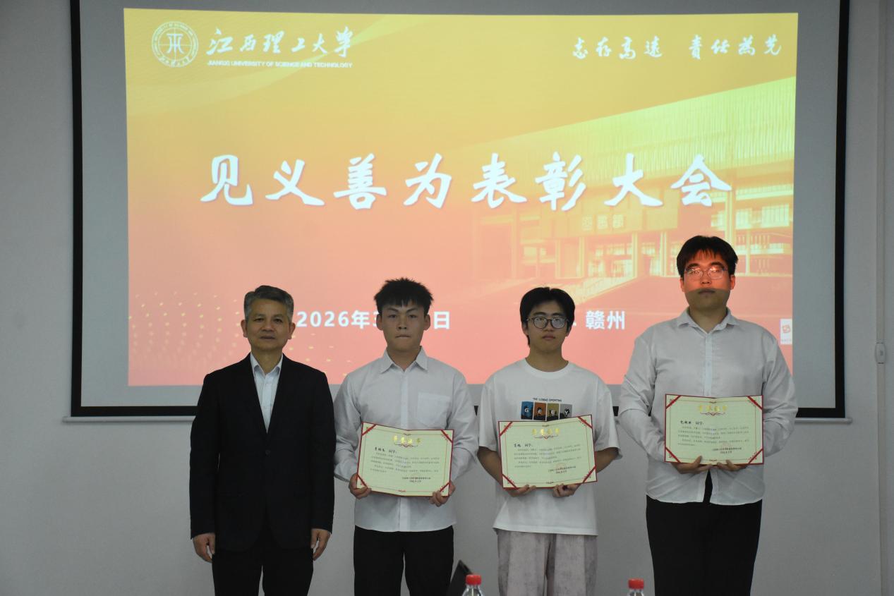 会上,党委武装部部长、保卫处处长陈龙泉宣读了学校平安建设领导小组《关于对材料科学与工程学院包超然、肖馗和李鹏飞三位同学的通报表彰决定》。此前,包超然、肖馗和李鹏飞三位同学在校园周边路遇昏迷男子,沉着分工、规范施救,为伤者赢得宝贵救治时间,事迹被《新法治报》专题报道,充分展现了江理学子的责任担当与良好精神风貌。